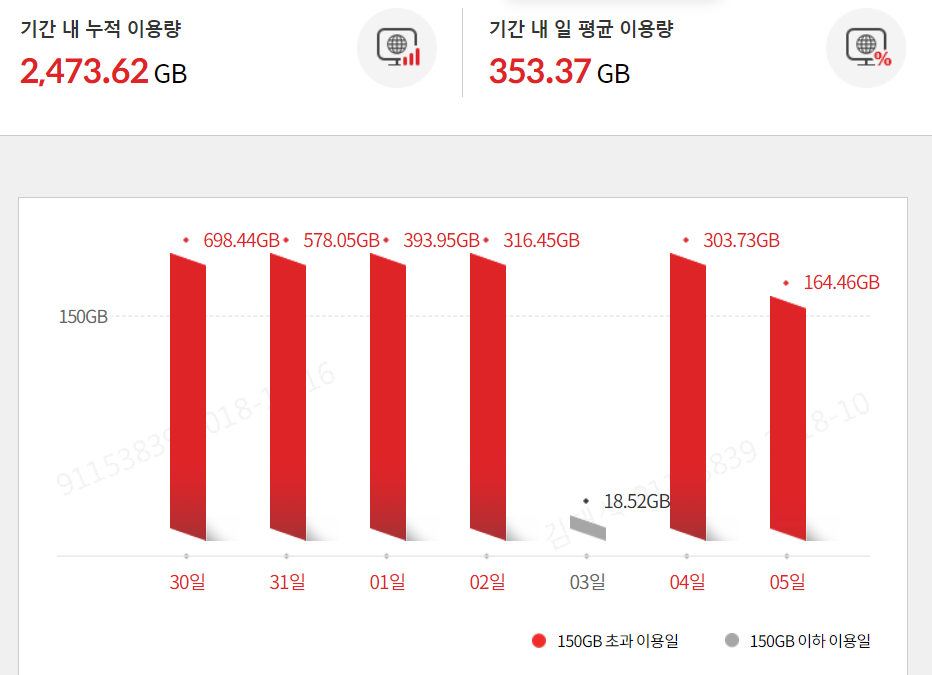 만약 이 기준을 넘는 데이터 사용량이 발생한다면