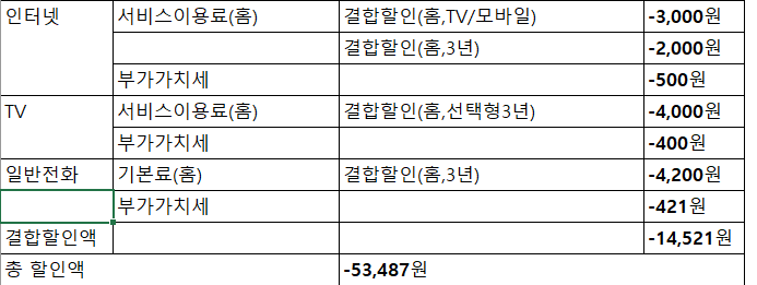 sk + btv 2대 묶고 kt 단독 사용 > kt 21000원+42000원=63000원