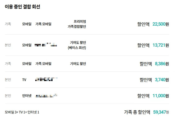 결합 : 프리미엄 가족결합 (모바일3 + TV1 + 인터넷1)