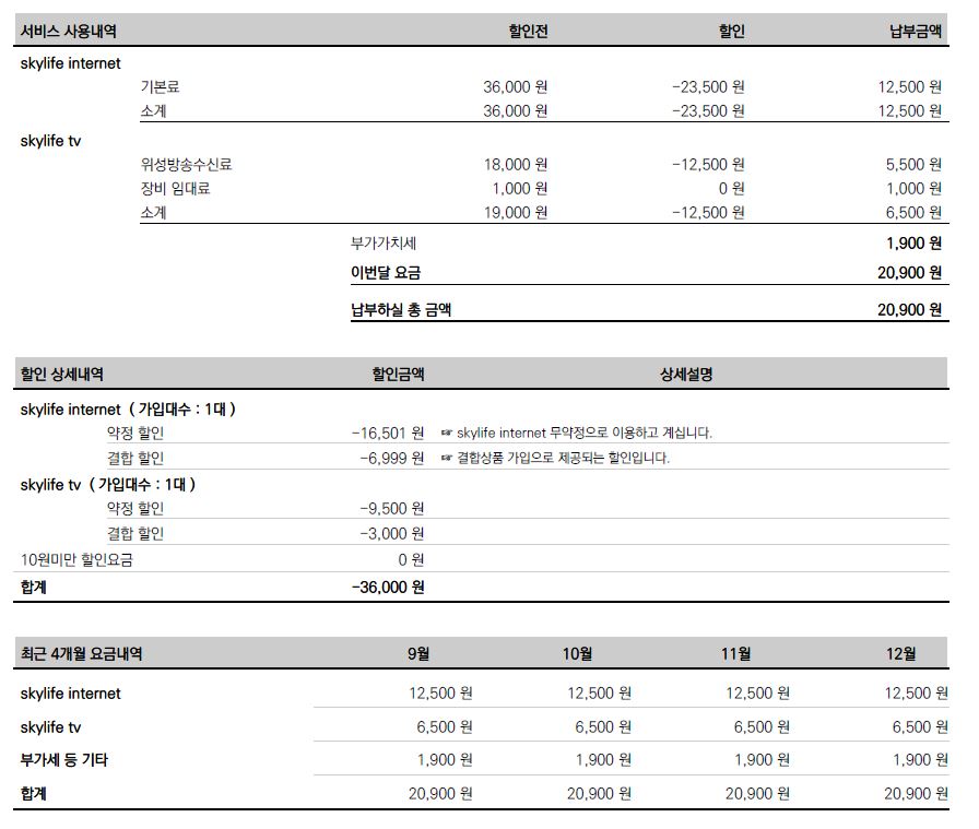 -> 예시 : 부모님가게 KT 100메가급 + 티비 = 약정 2년 남음 (결합된 인터넷이나 휴대폰은 없음)