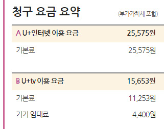 KT와 요금차이를 비교하면 LG 37,000원 vs KT 42,900원으로 = 5,900원 정도 차이인데