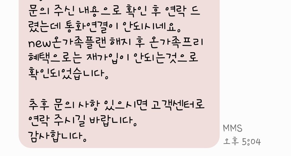 @김가영본사와 통화하였는데 지금은 온가족 프리도 신규 가입이나 전환이 중단되어 불가하다고 하네요~