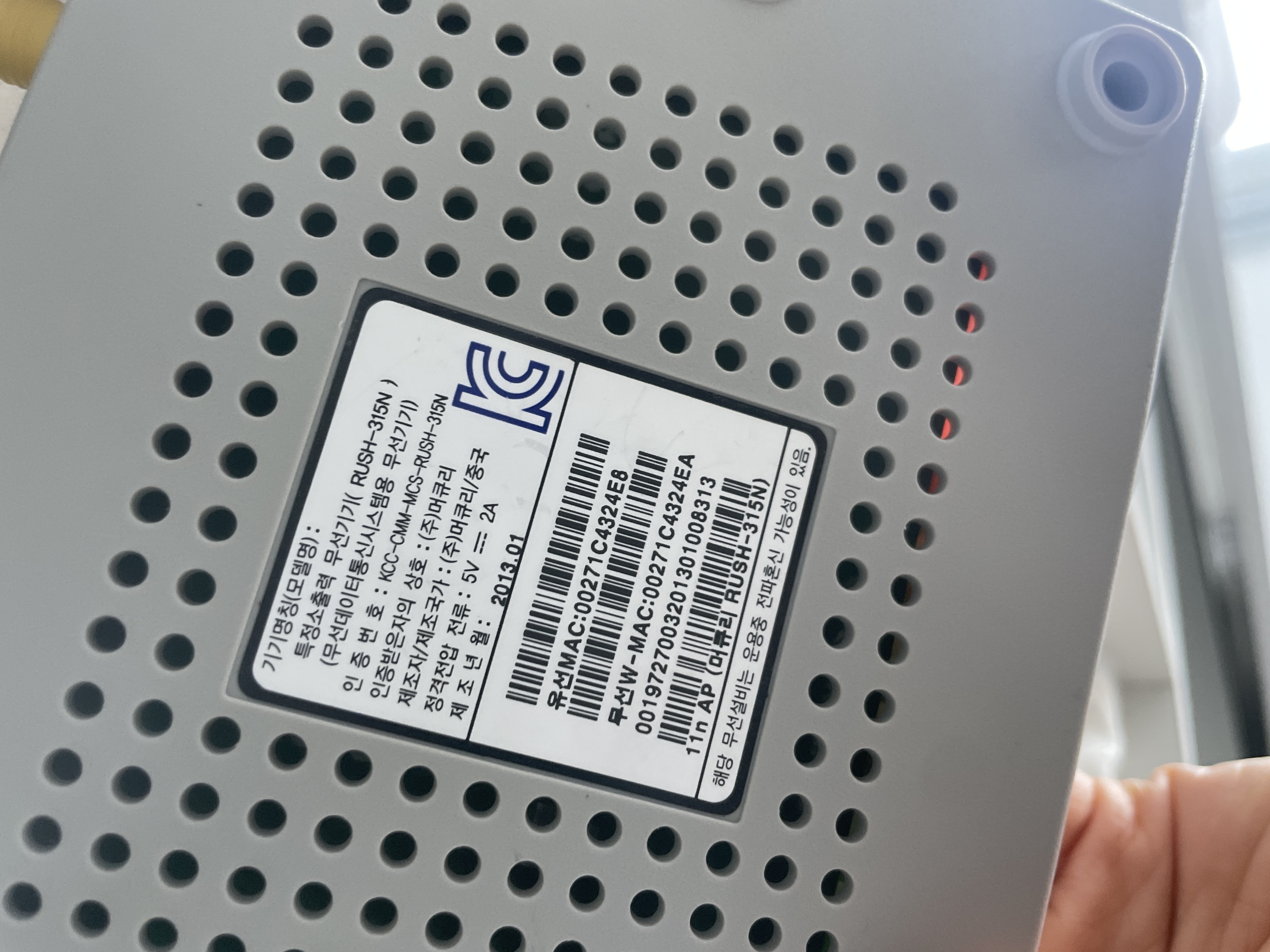 1) 댁내에서 실제로 사용 중인(무선 송수신이 이루어지는) 공유기가 RUSH-315N 기종이 맞는지