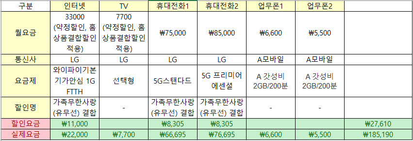 2회선 결합한다고 해서 추가로 더 할인 받는 건 없습니다🙅‍♀️