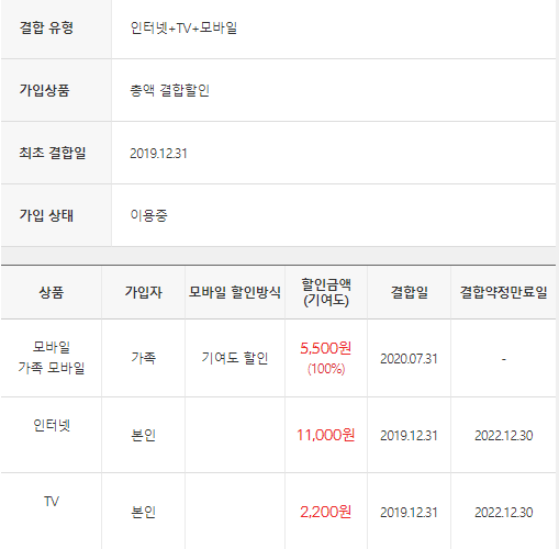 다만 어떤 휴대폰 요금제를 결합할인지에 따라 결합할인이 달라질 수 있어서