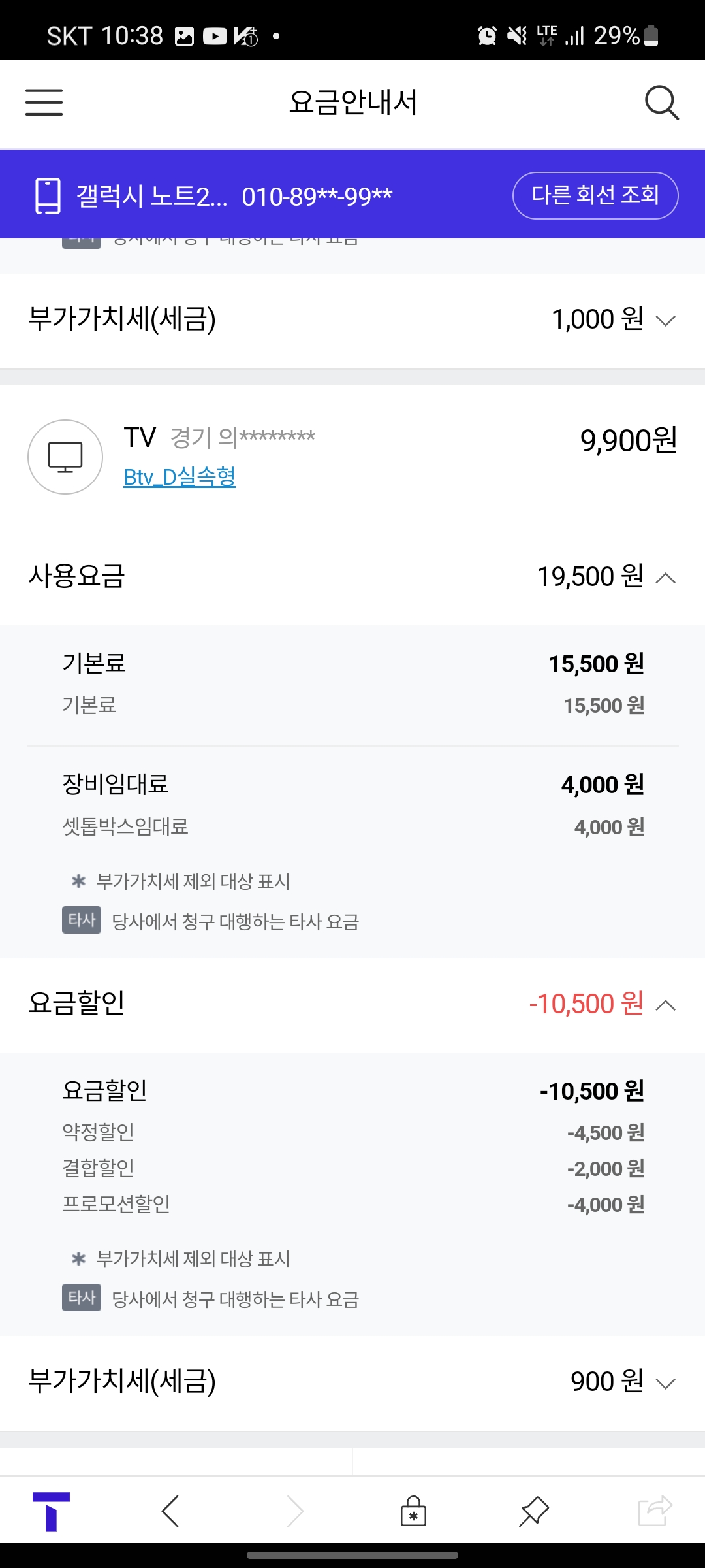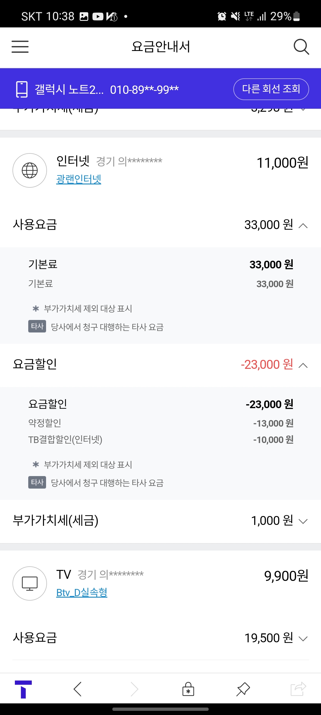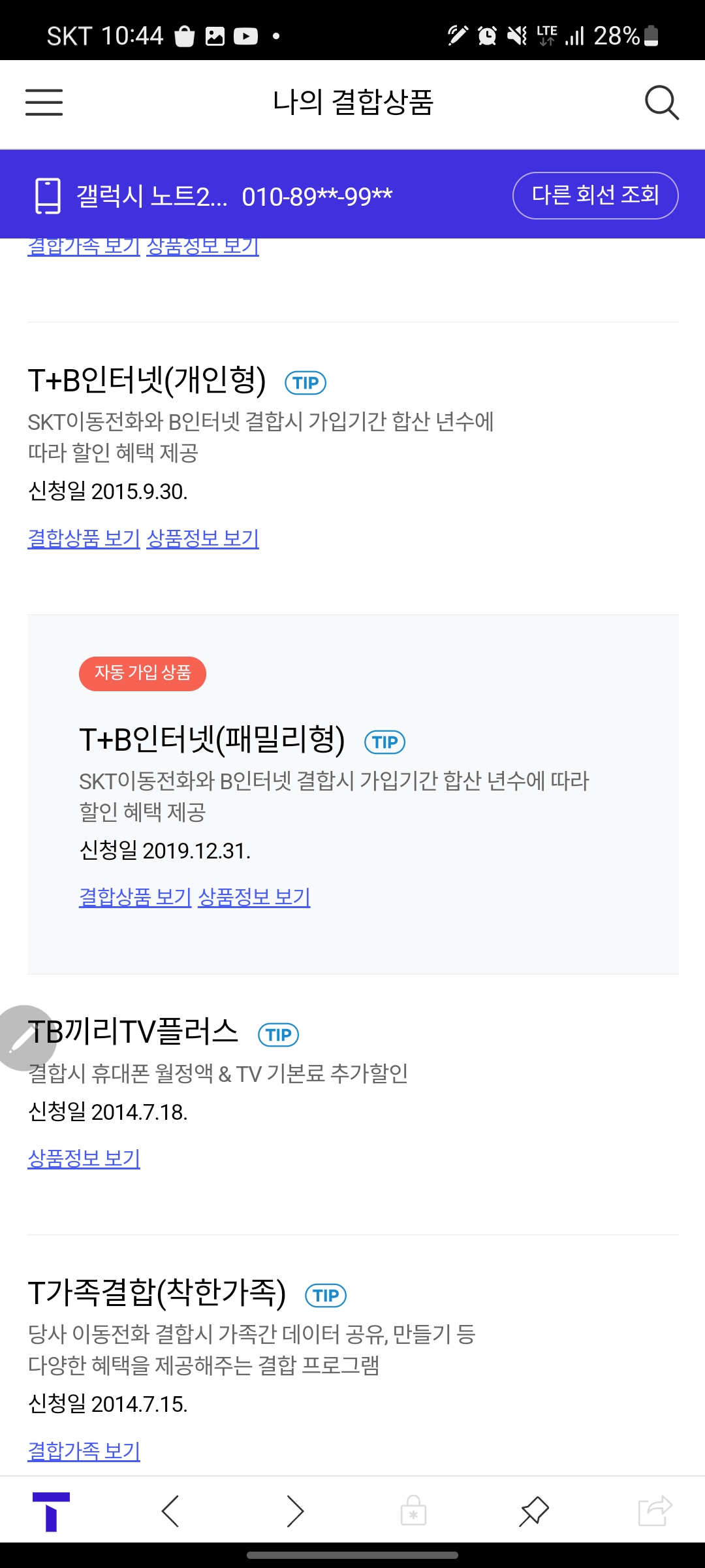 온가족할인(T+B인터넷) 결합상품 덕분에 엄청난 할인 혜택을 받고 있고
