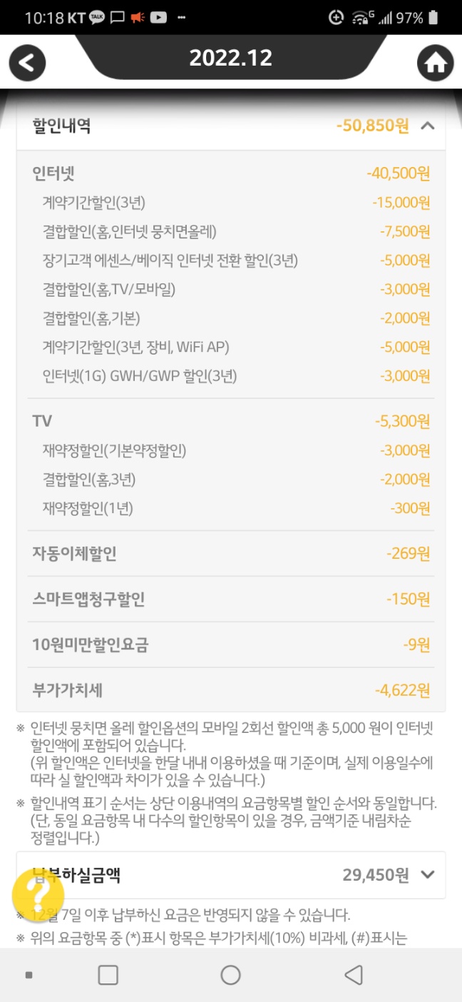 -위 혜택 받는 대신 월별 요금 38,500원으로 올라감 (지금 월별 요금 29,450원 내고 있음)