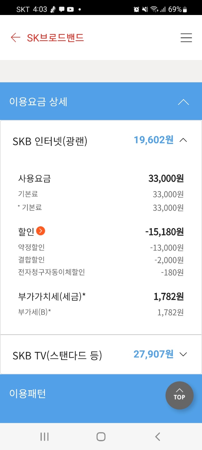 이미 가족분들께서 쓰시는 SK인터넷 2회선에 온가족할인을 적용해 뒀기 때문이었네요ㅎㅎ