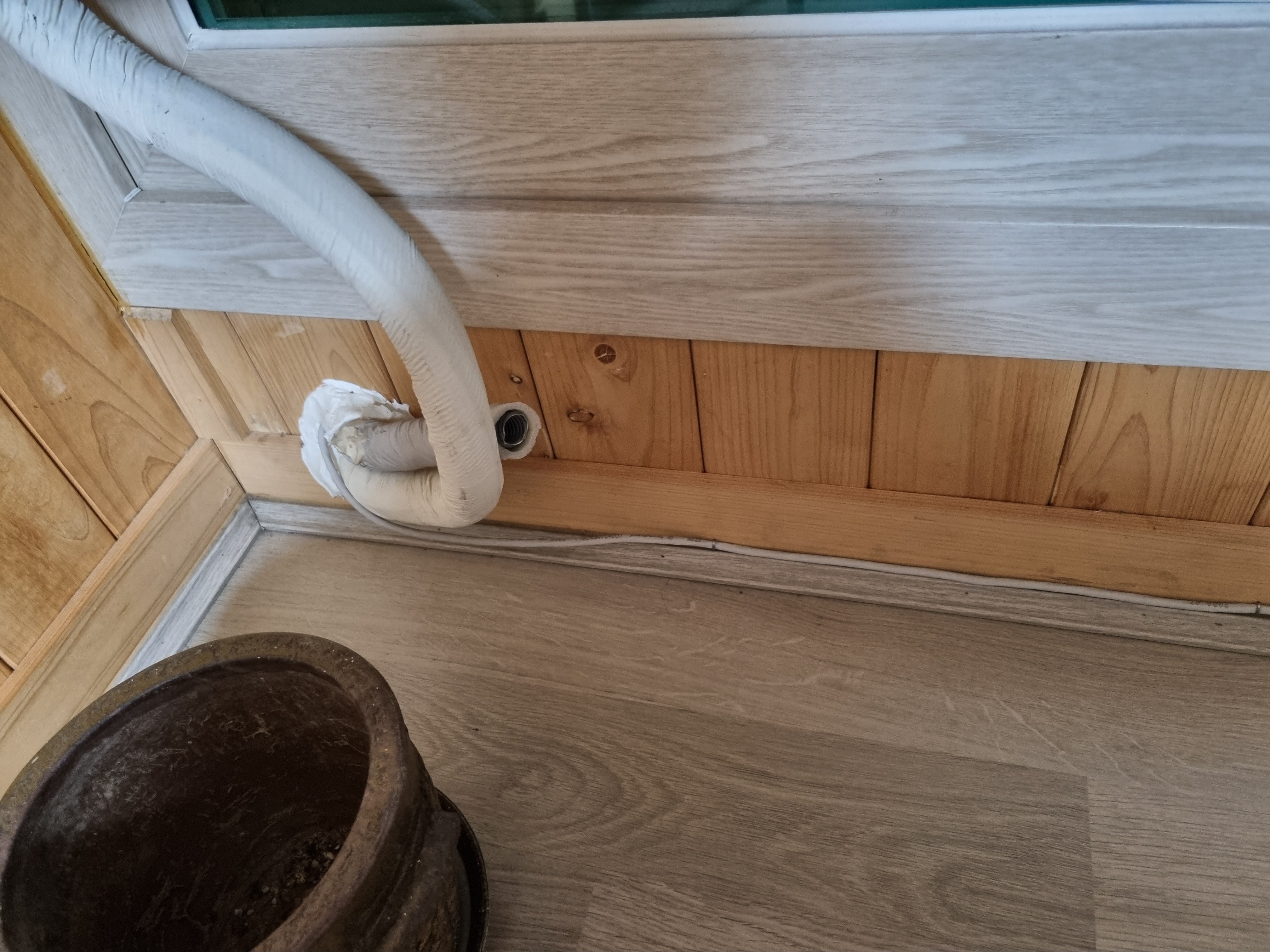 옥상에서 에어컨구멍을 통해 거실로오는 1번랜선.
