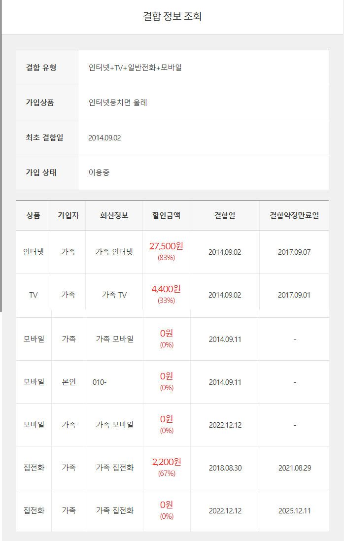 패밀리 할인은 모회선이 KT라면 추가하는 자회선 인터넷 요금을 할인해 주는 제도죠.
