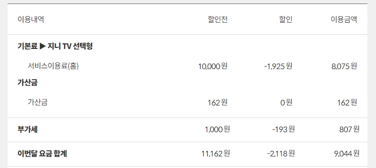 아아아나이야더님께서 첨부해 주신 이미지의 요금 명세서 내역과