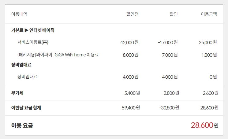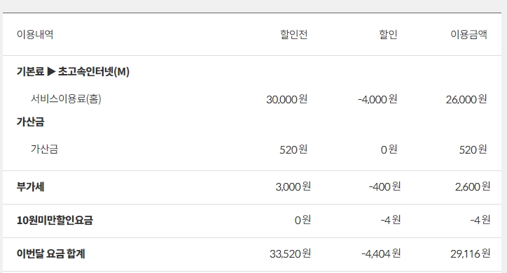두번쨰 인터넷 요금