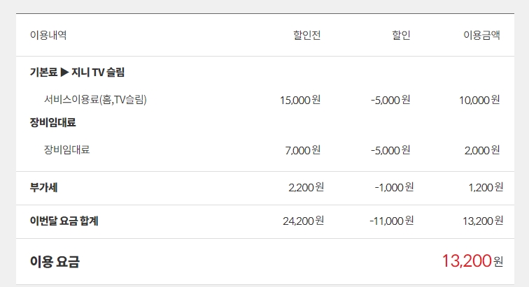 첫번째 인터넷 tv 요금
