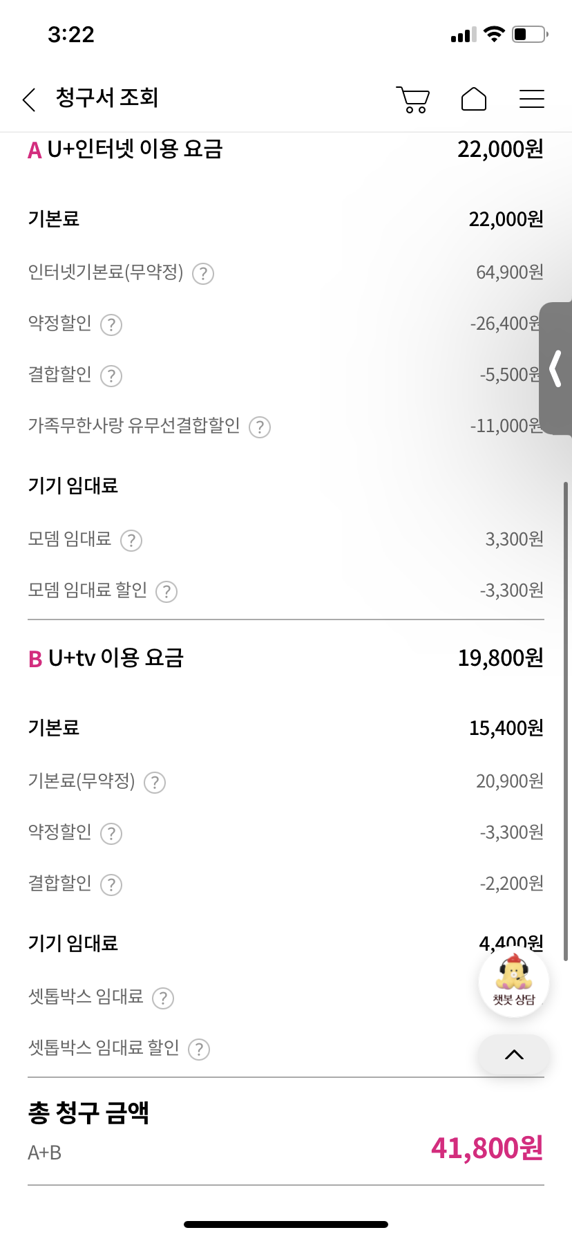 유무선 결합할인 혜택이나 선택약정할인의 혜택을 전혀 받지 못하다보니..