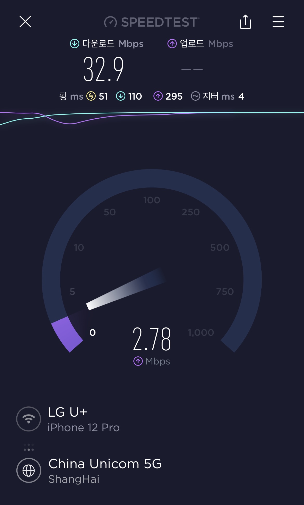 측정이 잘못된 건지 업로드 쪽은 아예 속도가 확인되지 않고 있네요?!