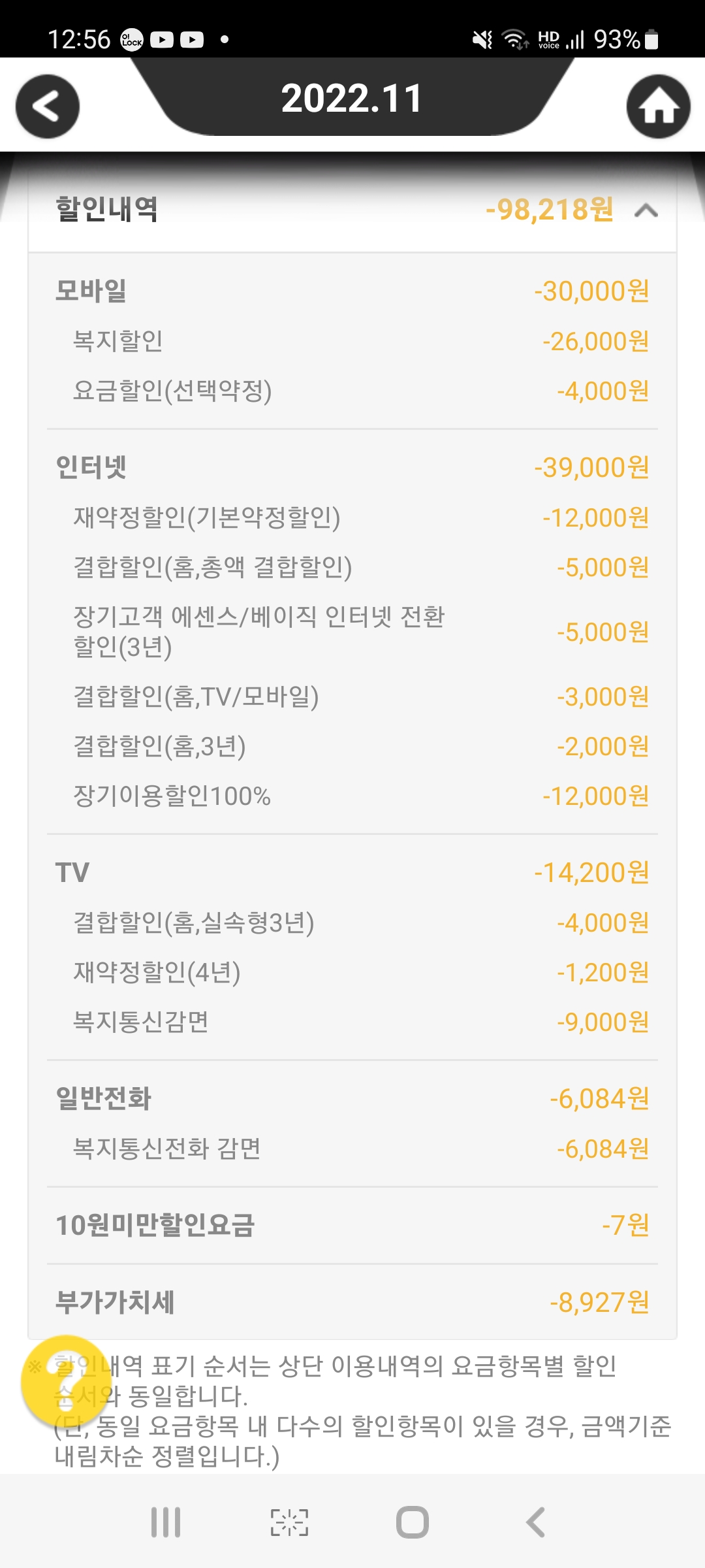 3년동안 3천300원 요금할인 해주겠다고 해서 2번째 했습니다