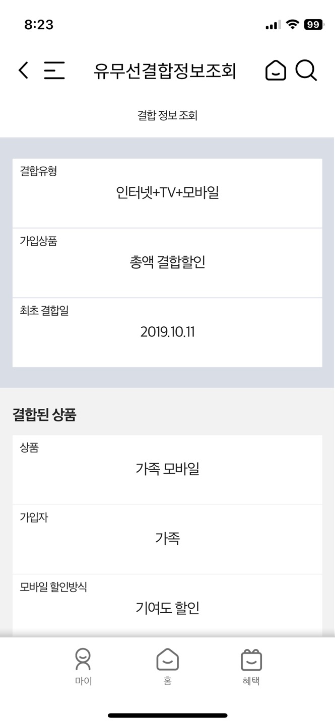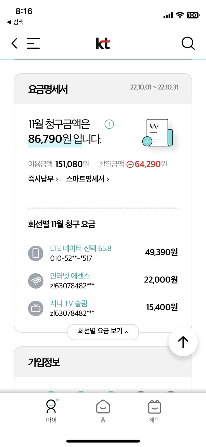 지금은? KT폰 1회선과의 결합으로 인해, 매월