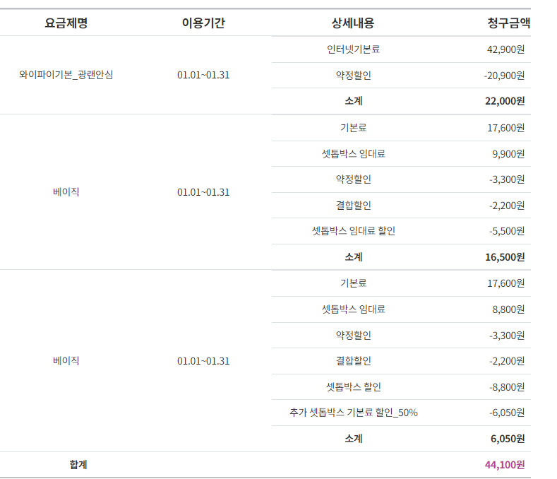 => 월요금은 45,100원이 됩니다.