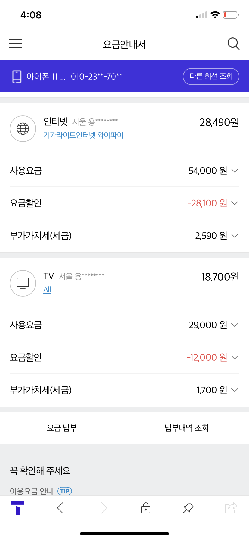 (SK휴대폰은...결합을 안하신 상태로 보이구요~~!!)