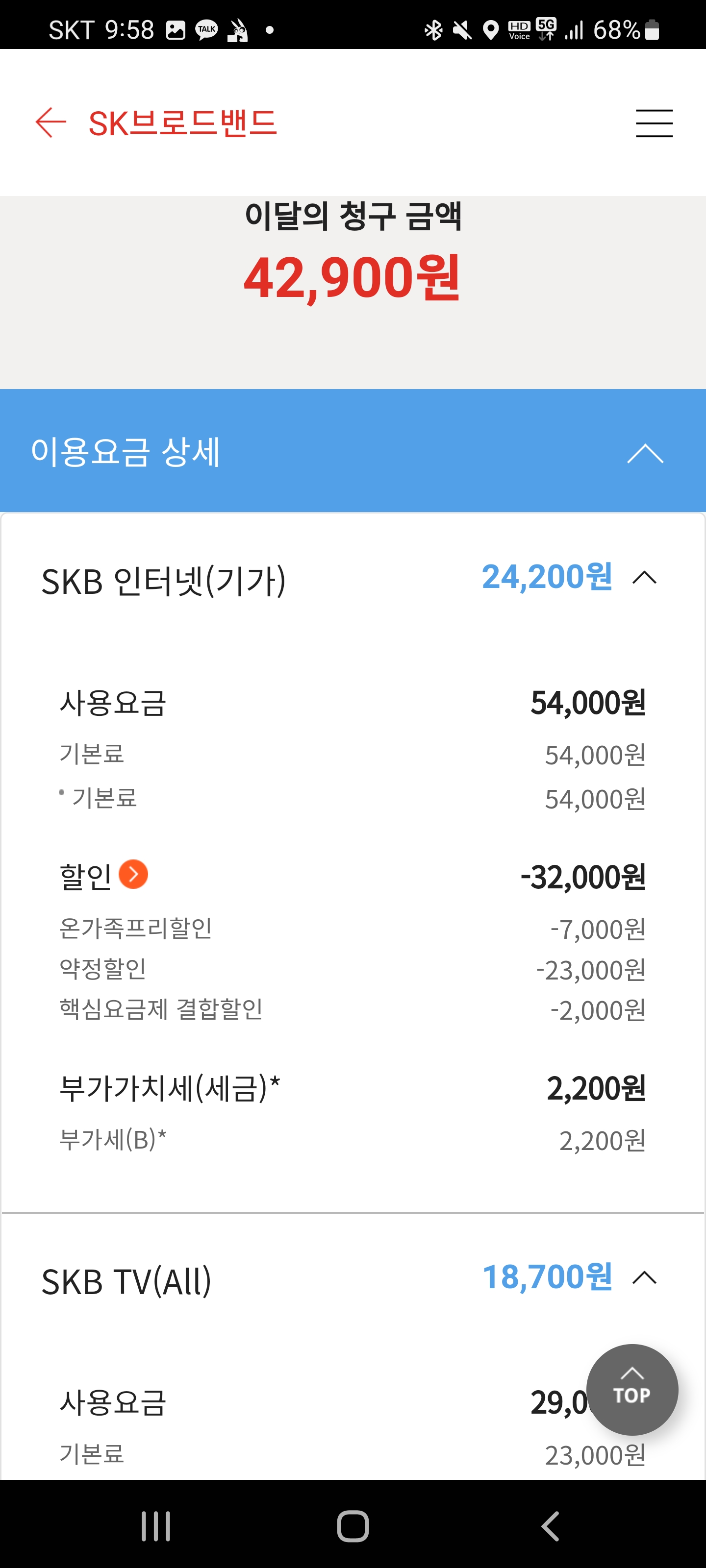 인터넷과 TV도 SK로 하는게 혜택이 많다고..