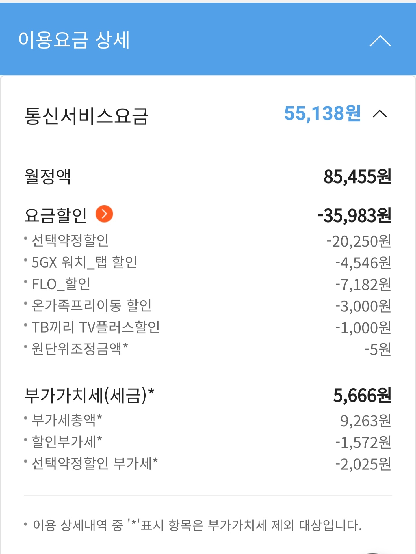 아래는 현재 달마다 나오는 요금표 입니다