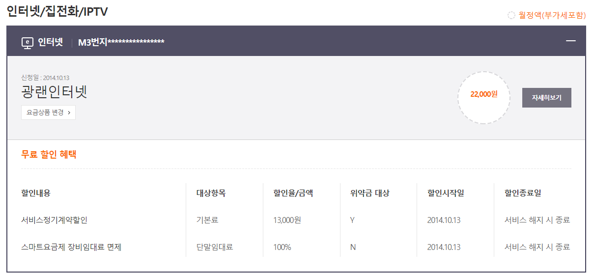 휴대폰이 3회선 결합된 덕분에 100메가 인터넷을 무료로 사용중이시지만,