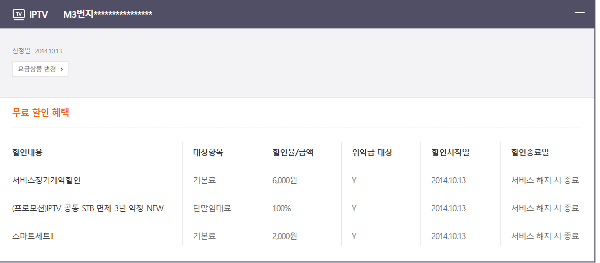 제 결합상품 현황은 아래와 같습니다
