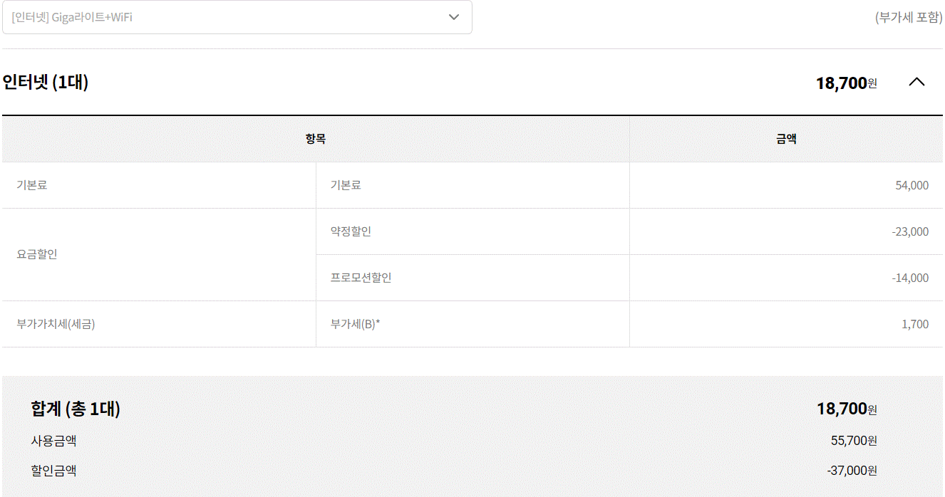 현재 SK 기가라이트 와이파이 인터넷과 + 베이직 IPTV를 월 29,700원에 사용 중이지요!