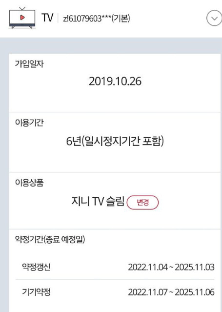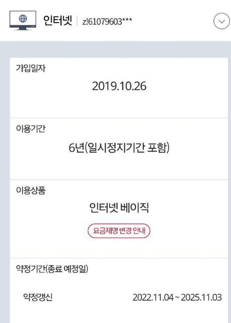 TV와 인터넷은 위와 같이 11월 초에 약정 종료 예정입니다.