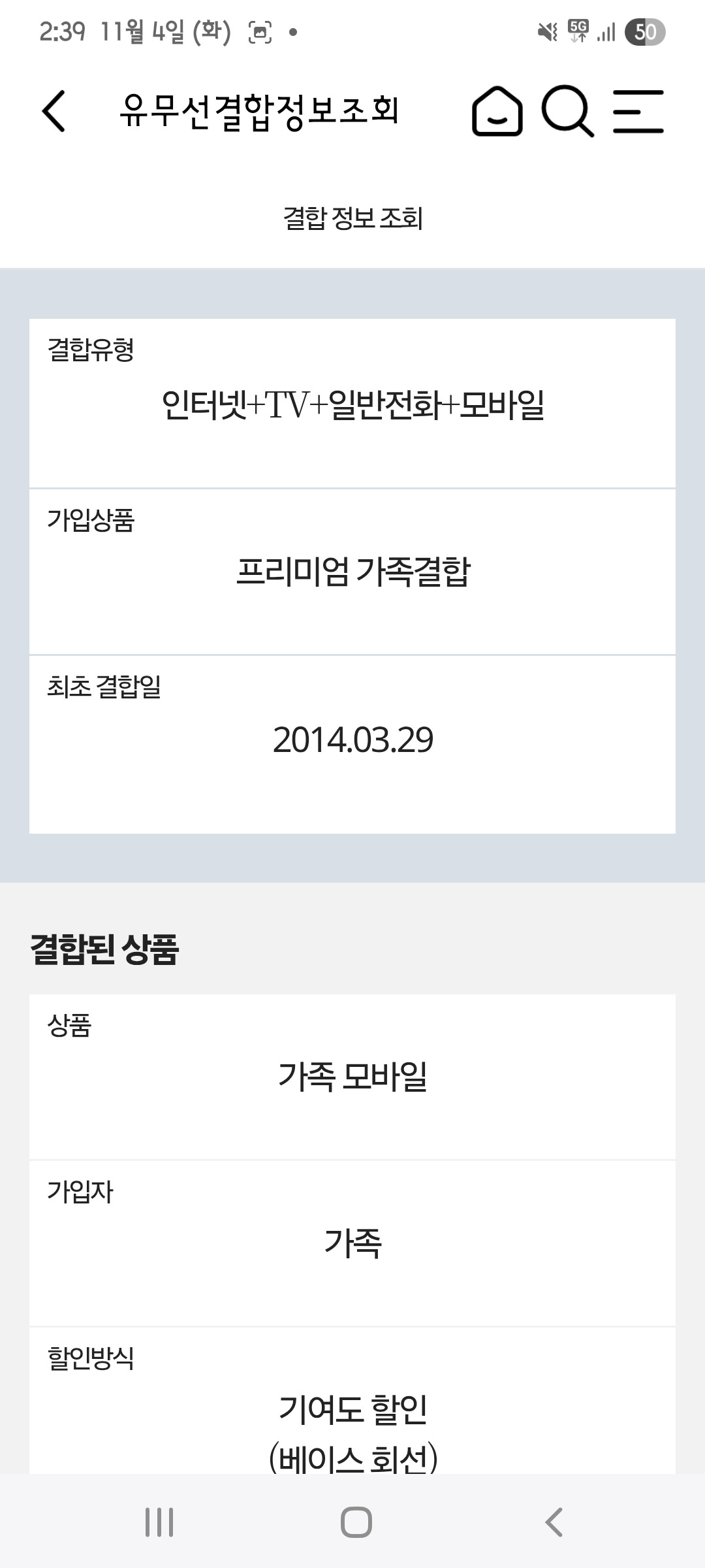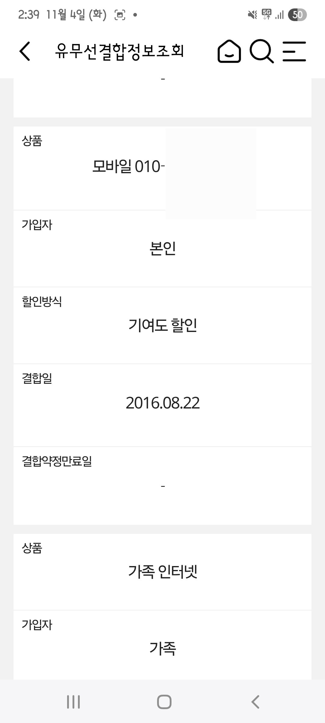 - 구체적 핸드폰 요금제 및 가족결합 현황은 아래 와 같음