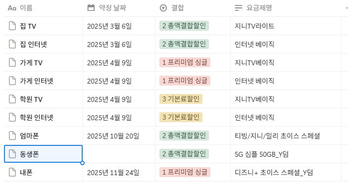 - 그리고 인터넷 약정은 전부 25년 3~4월에 계약해주신 듯 하고요 +_+