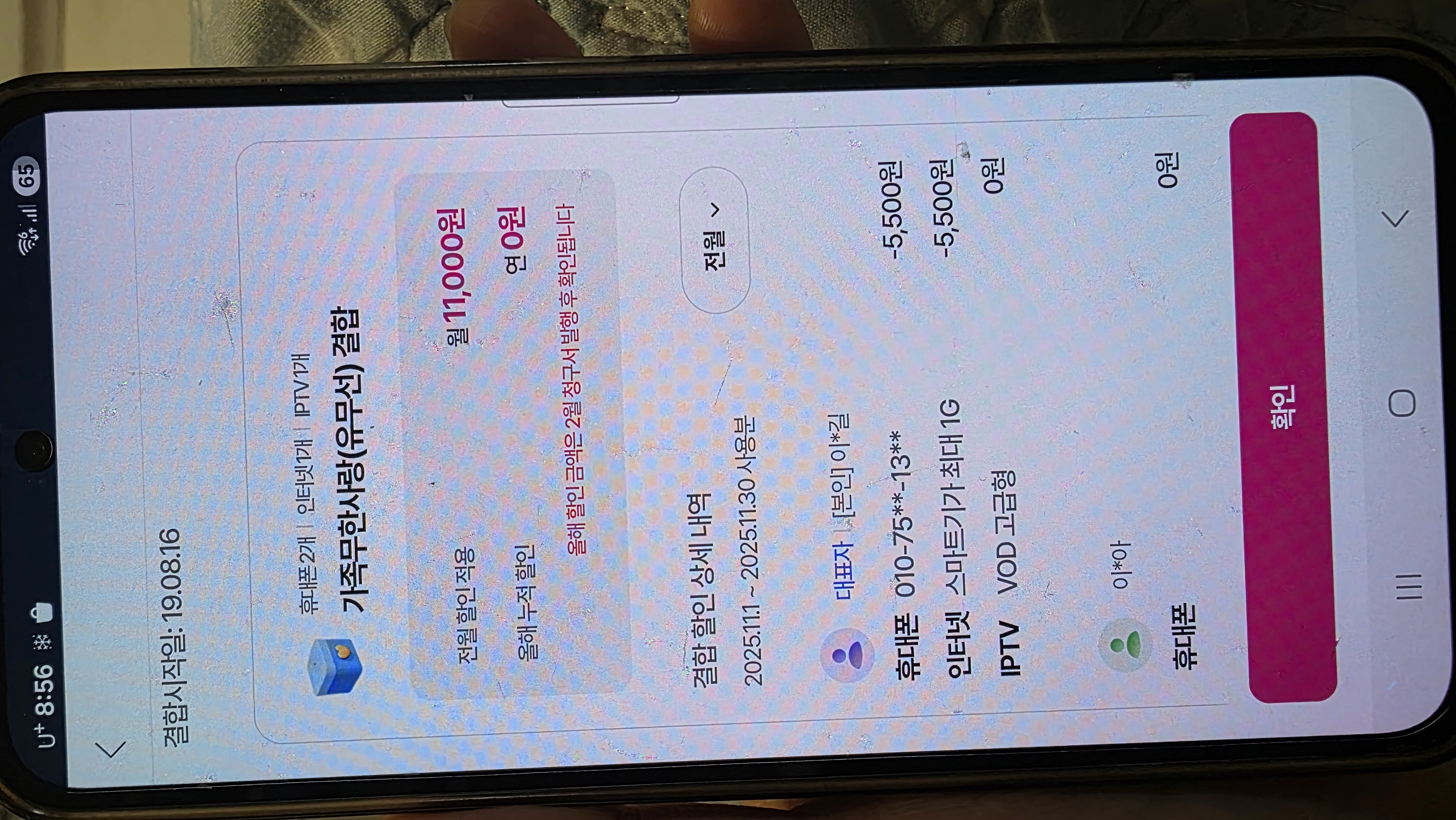 지금은 약정이 걸려있는 LG 티비, 인터넷, 휴대폰이 결합할인이 적용되어있지만,