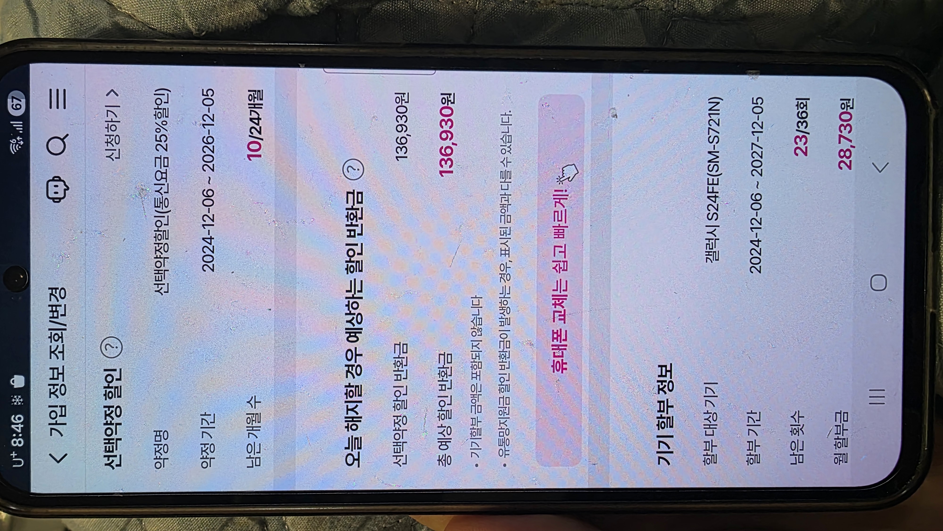 약정 기간이 많이 남지 않았다는 걸 고려했을 때 통신사를 유지하는 편이 낫다고 안내드렸지요~!