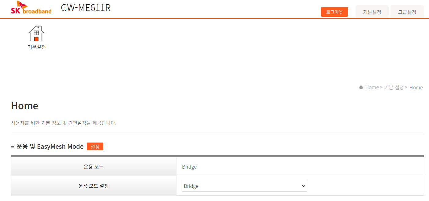 2) 다시 한 번 해당 장비를 브릿지 모드로 설정하여