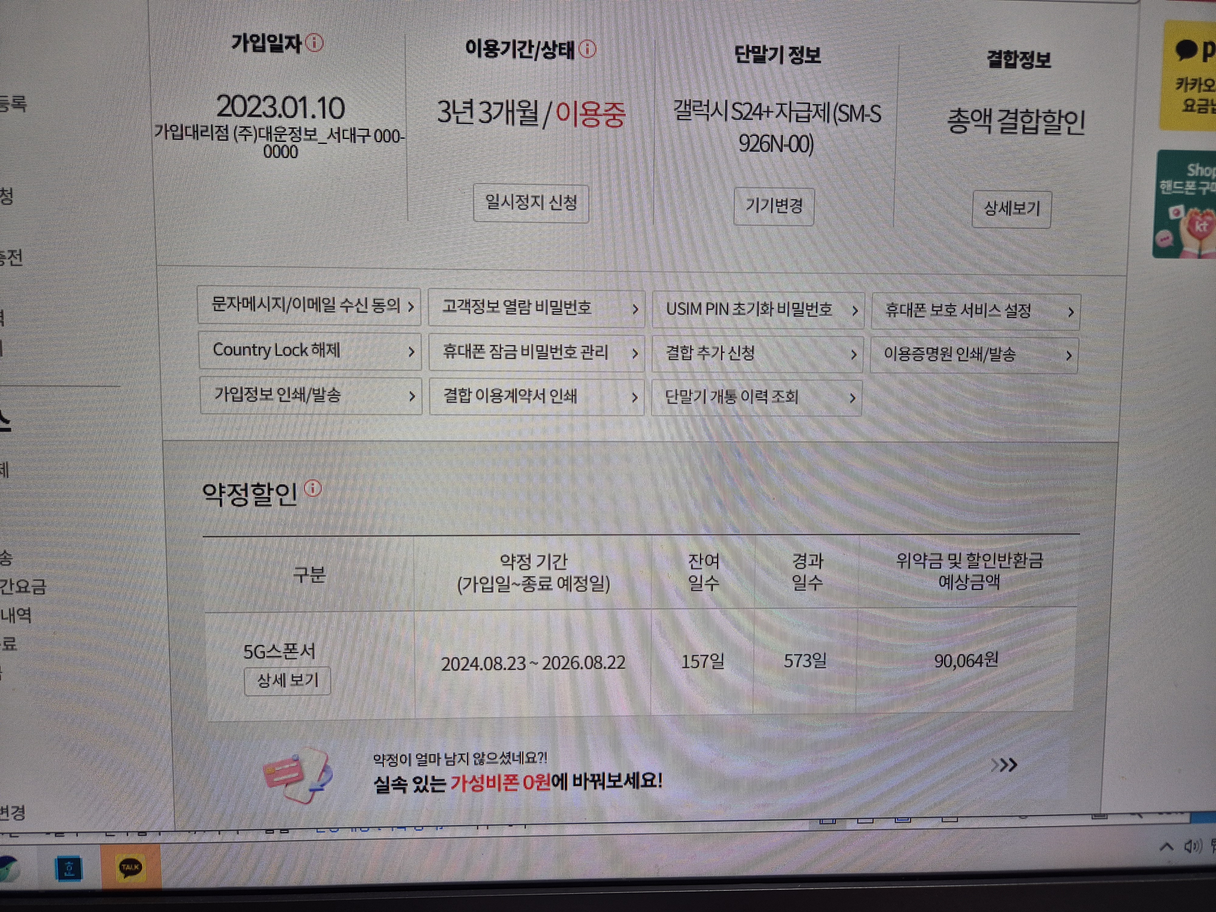 사실 통신사 옮기는 거 귀찮아서 그냥 재약정 하는 쪽으로 마음이 기울어져 있긴 하거든요. 결합 할인도 묶여있고..
