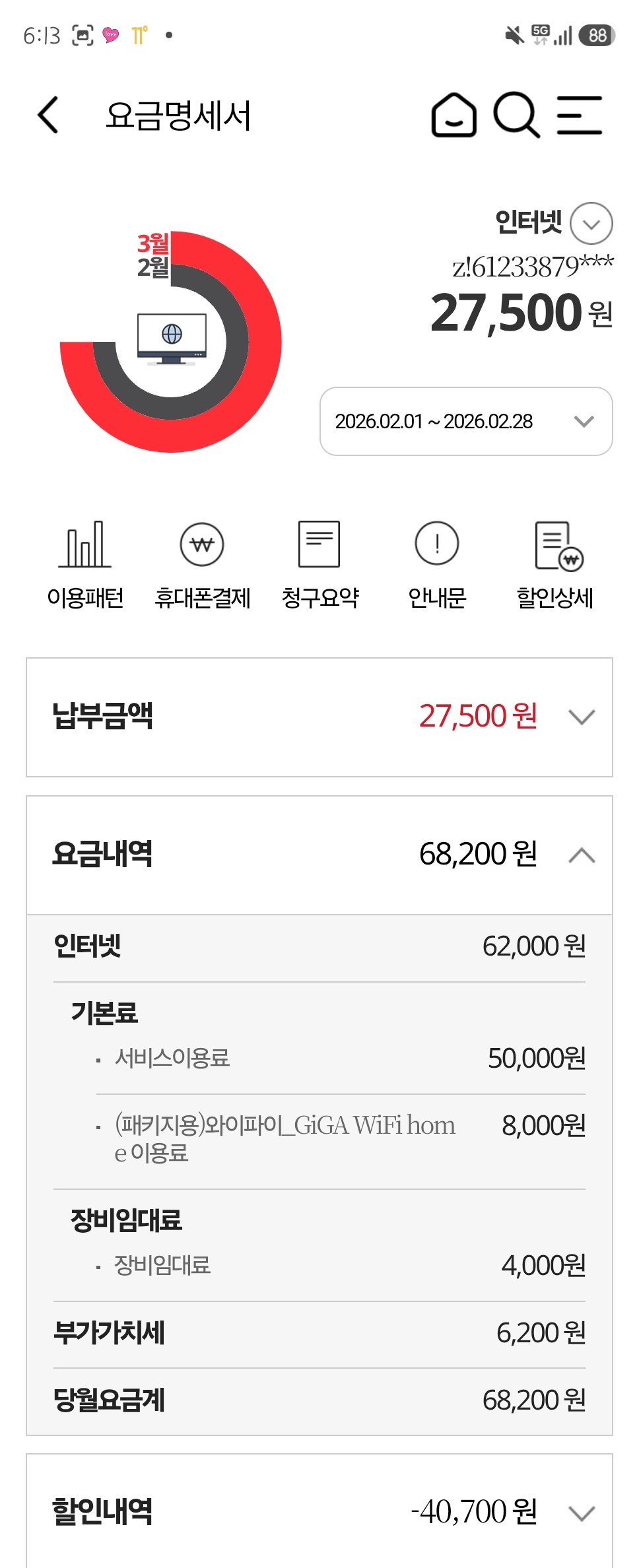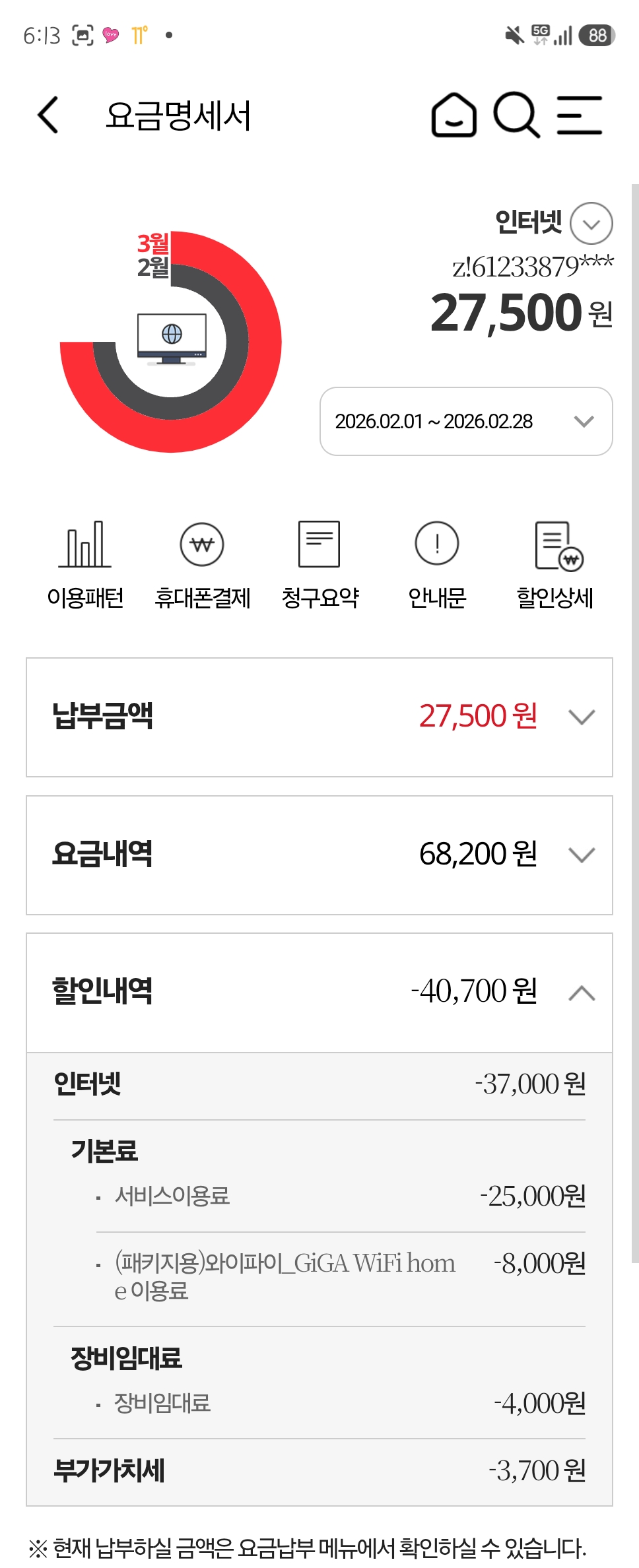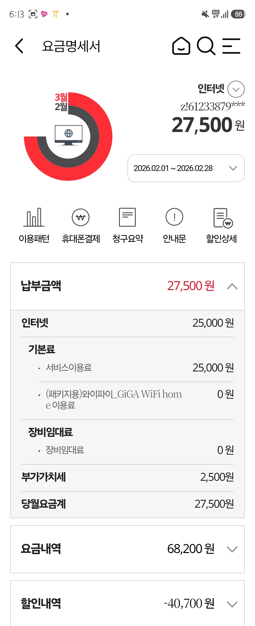 인터넷(프리미엄 싱글결합 아닌 단독 인터넷)
