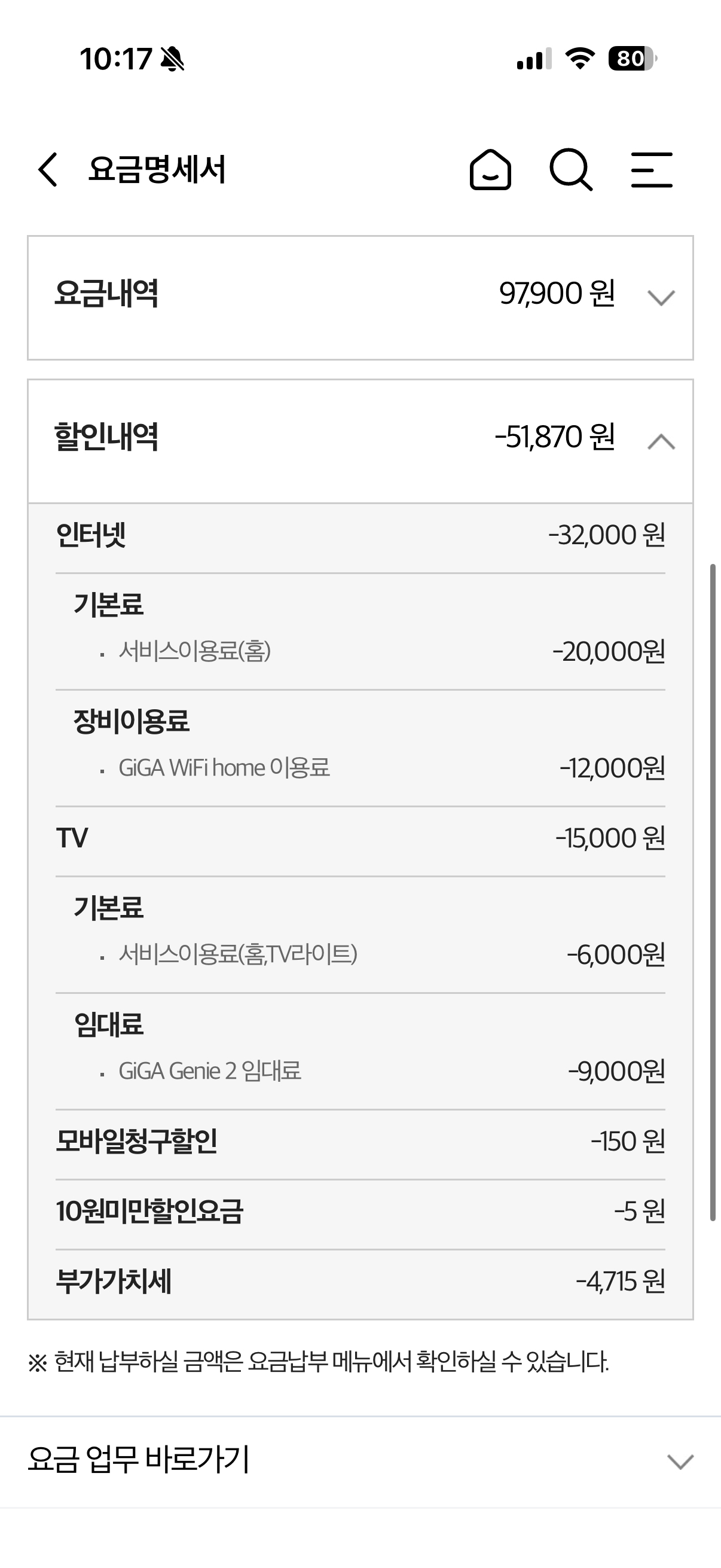 아마도 인터넷 요금제가 1기가 요금제인 듯한데요! (=현재 인터넷 요금이 부가세 포함 33,000원이니까요)