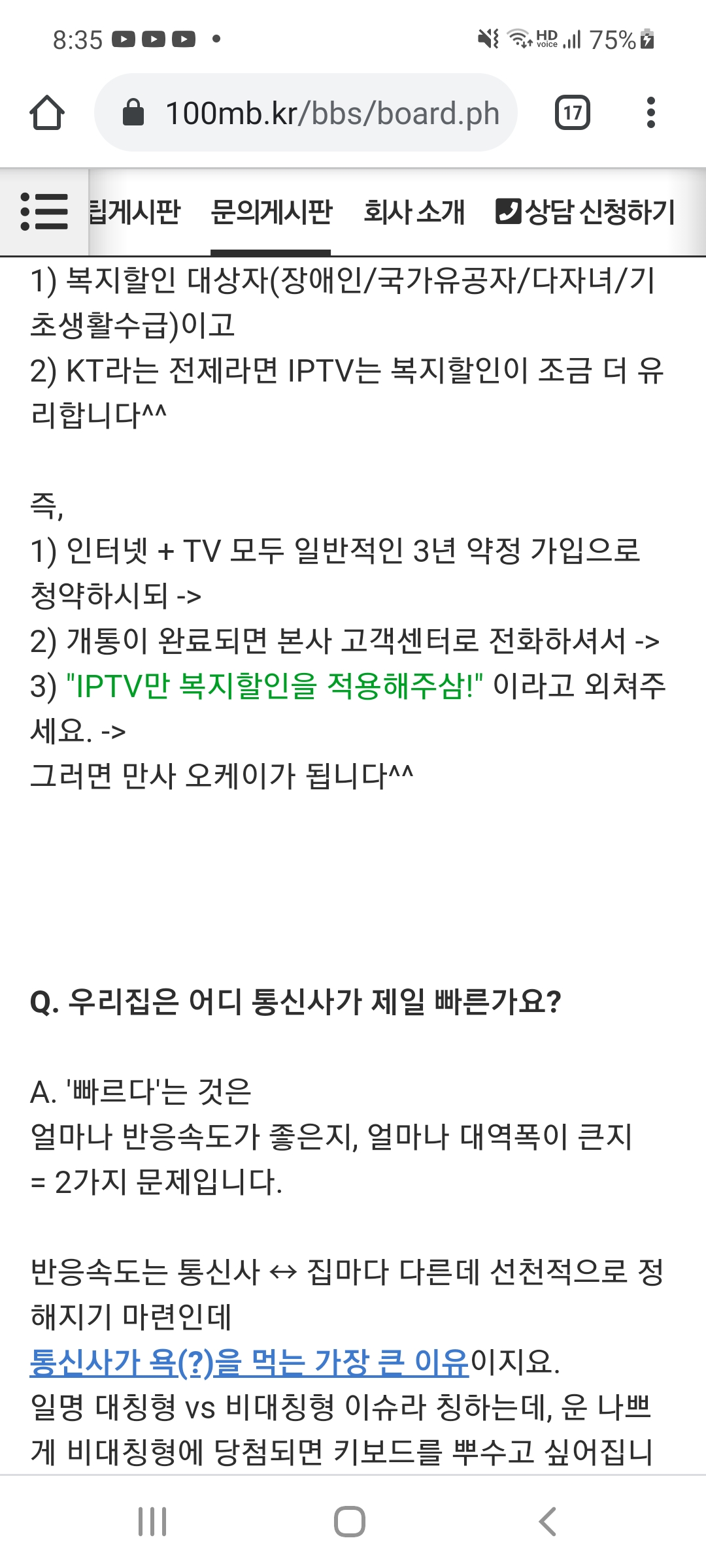 그에 따라 속도 업그레이드보다는 통신사 이동이 나을 수도 있습니다
