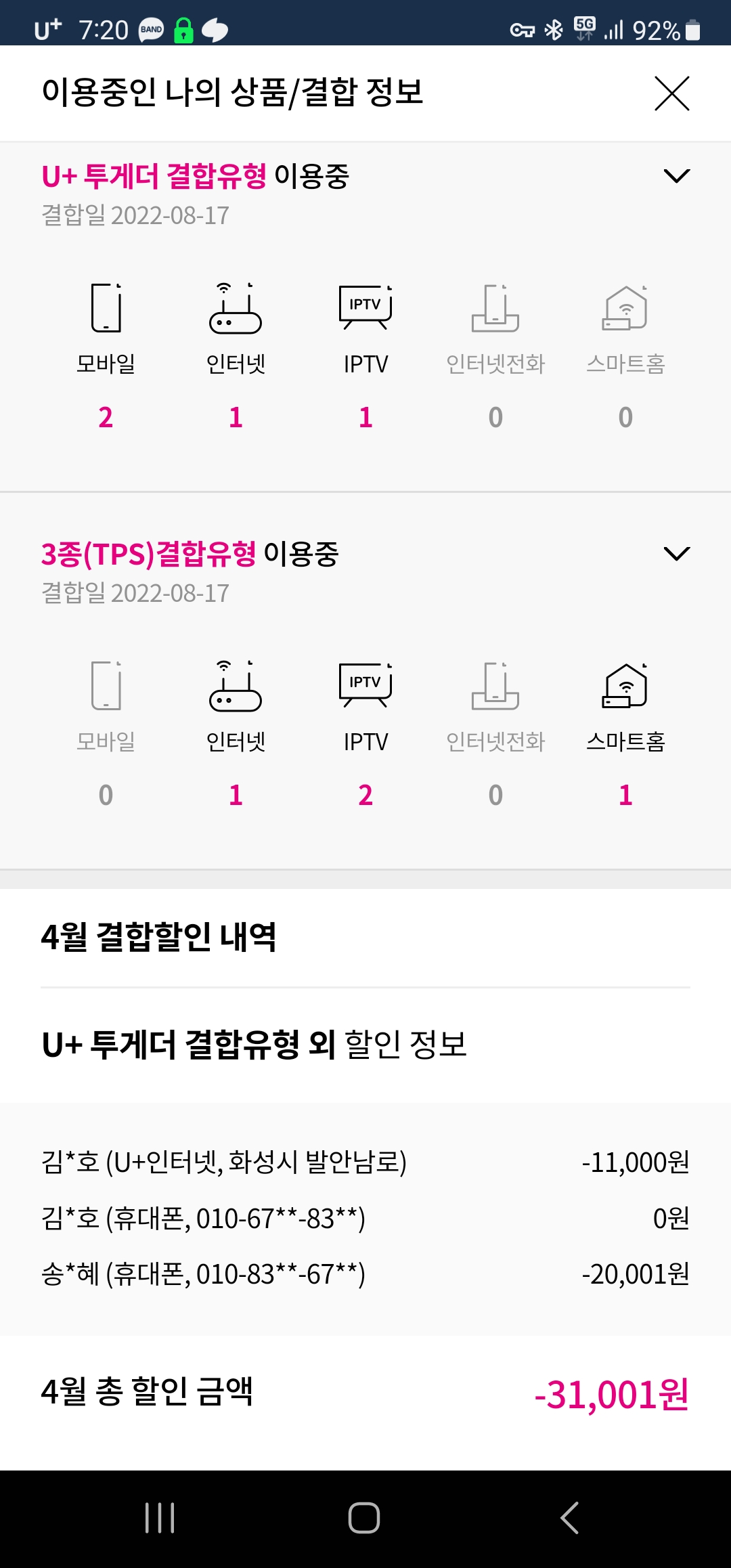 * 적용 중이신 폰결합 (유무선 결합) 상품명?
