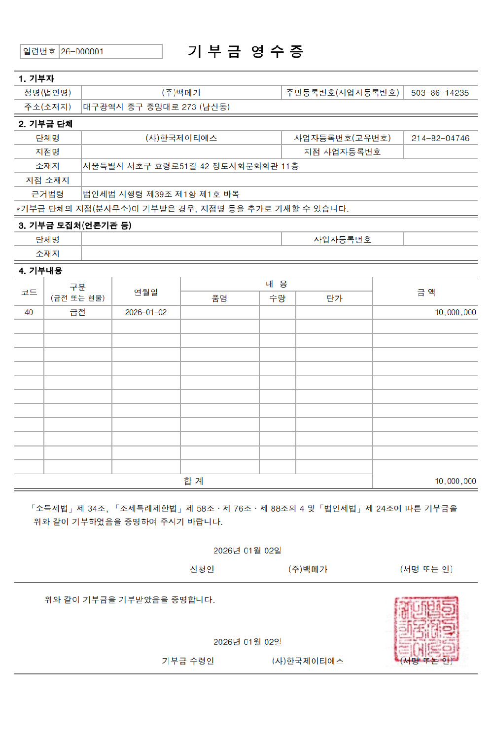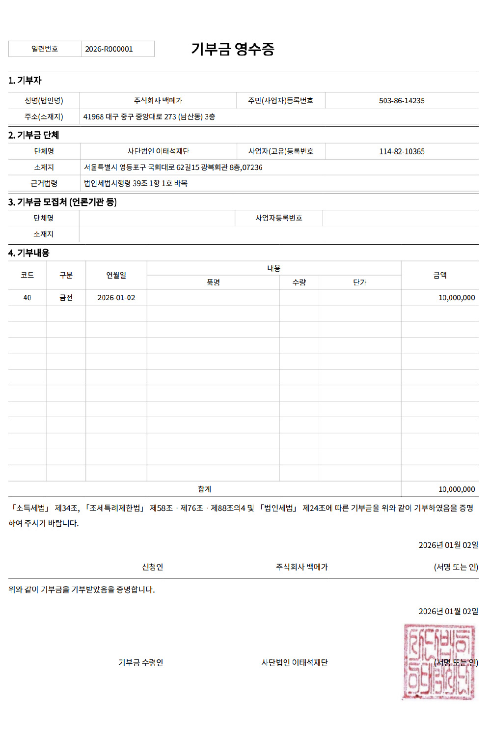 이러한 이해 충돌을 피하기 위해 : 백메가는 몇 년간 기부 사실을 대외적으로 알리지 않고, 회사 임원들의 자발적 급여 삭감으로 기부금을 마련해 왔습니다. 하지만 기부 문화를 널리 알리는 것이 기부 이상으로 중요하다 믿습니다. 무엇보다 많은 이들의 도움으로 백메가가 존재한다는 사실에 대해, 임직원 모두의 공감대가 형성되어야 합니다.
