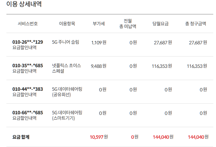 4번은 KT로 해서 결합할인 받으려고 KT로 말씀드렸던 내용입니다~