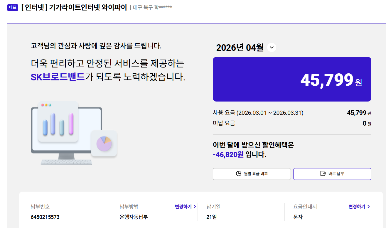 본가(어머님댁) KT 인터넷과, 사업장 SK 인터넷 모두..! 재약정이 더 유리할 가능성이 있어서요~!