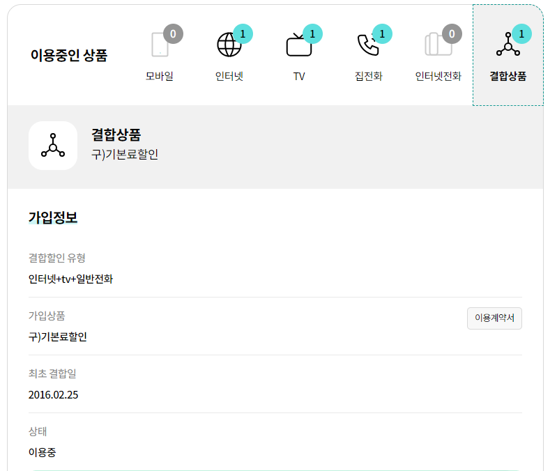 현재 기준 KT인터넷과, 티비 1대, 집전화까지...!!