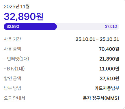 : 1기가 와이파이 기본 인터넷 19,800원 + 베이직 TV (UHD4) 16,500원 = 총 36,300원 부과