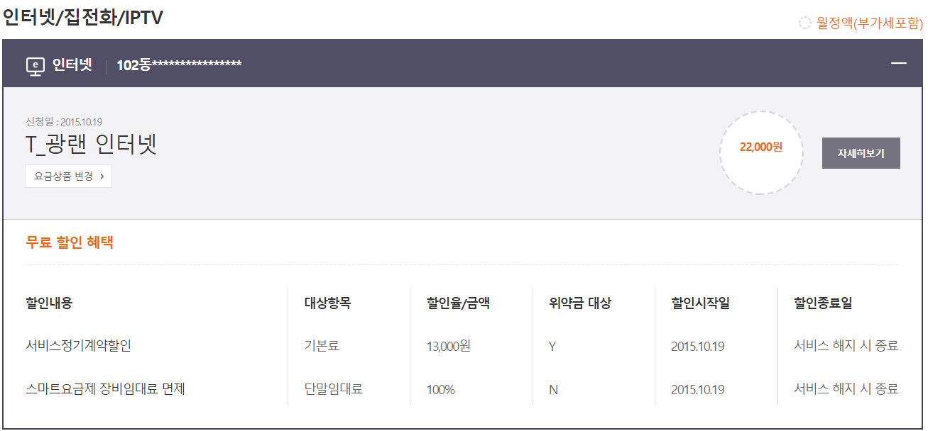 인터넷은 15년도에 가입해서 약정이 끝난걸로 알고있었는데 현재 T월드에서 확인해보니 이상한 점이 있어 사진첨부합니다.
