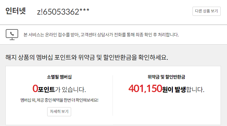 약정은 다음달 끝나는 걸로 나와있는데 위약금이 너무 많이나오네요
