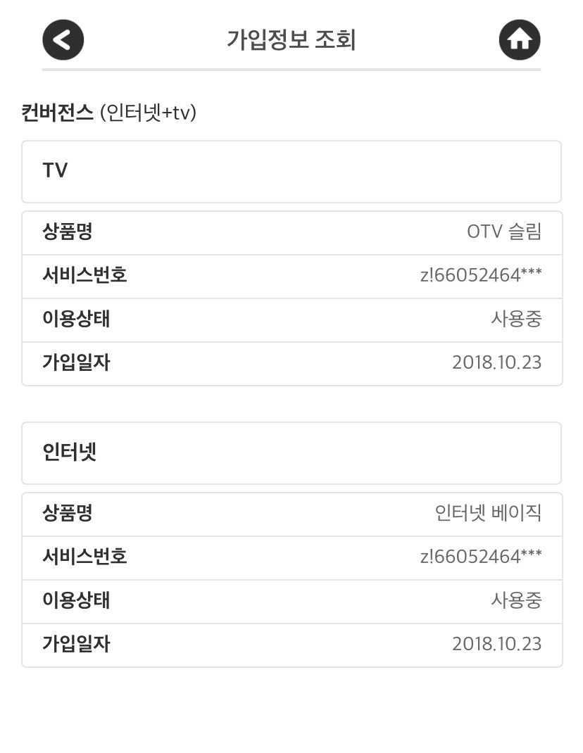 -> 예시 : 부모님 가게 LG 500메가 + 티비 = 이용중! (약정 2년 남음 / 폰결합 없음)