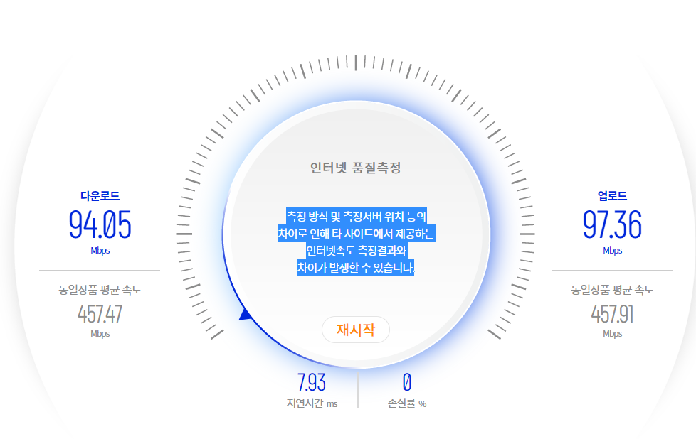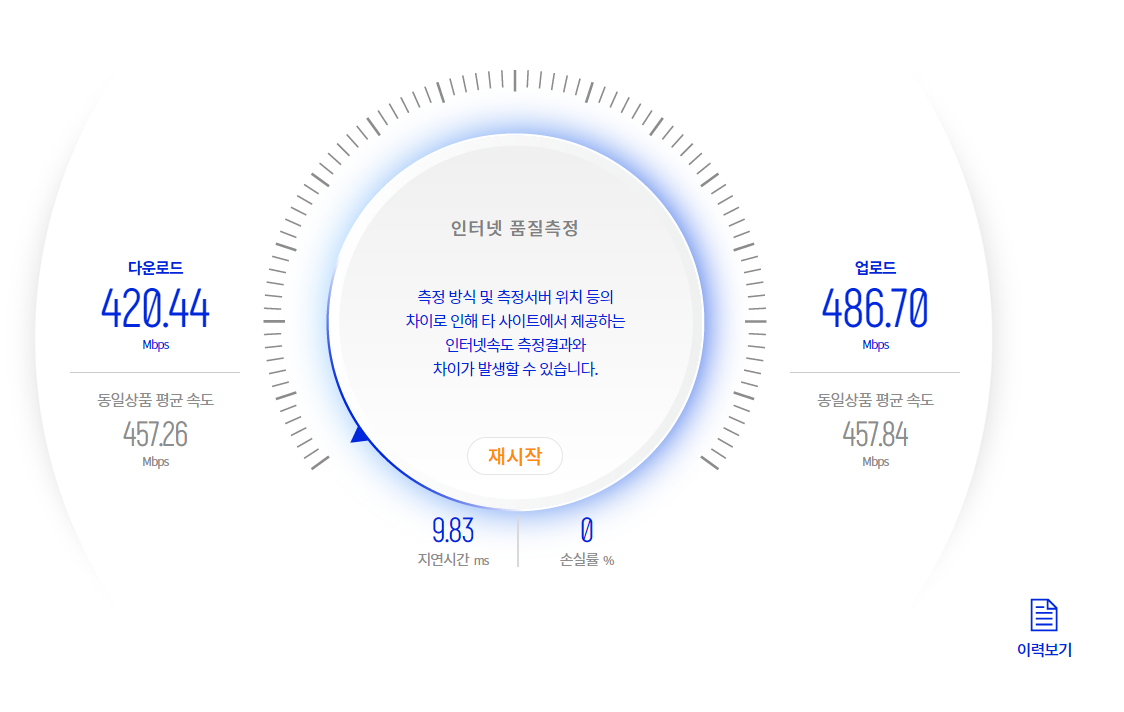 500메가 인터넷에서 400Mbps 이상으로 측정된다면 튼튼한 망이랍니다 ^^