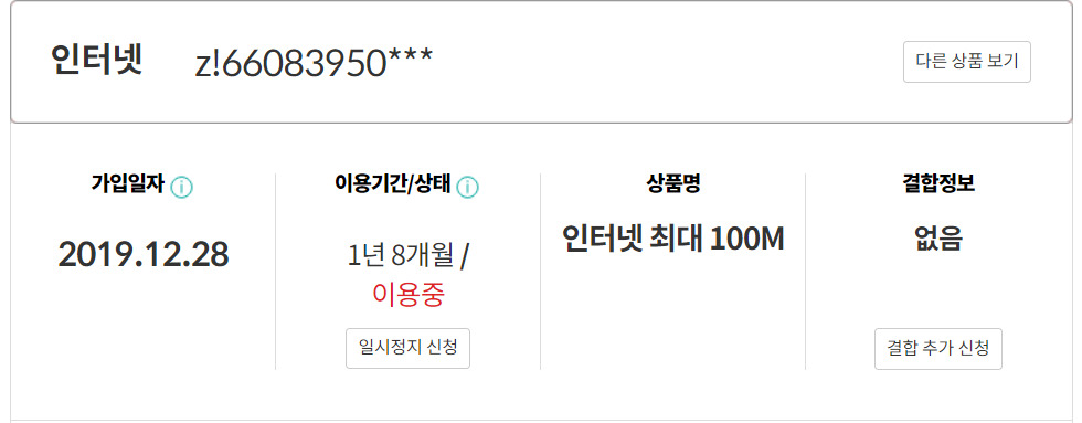 먼저 가입한 인터넷과 약정기간이 분리되는 아쉬움이 있습니다.