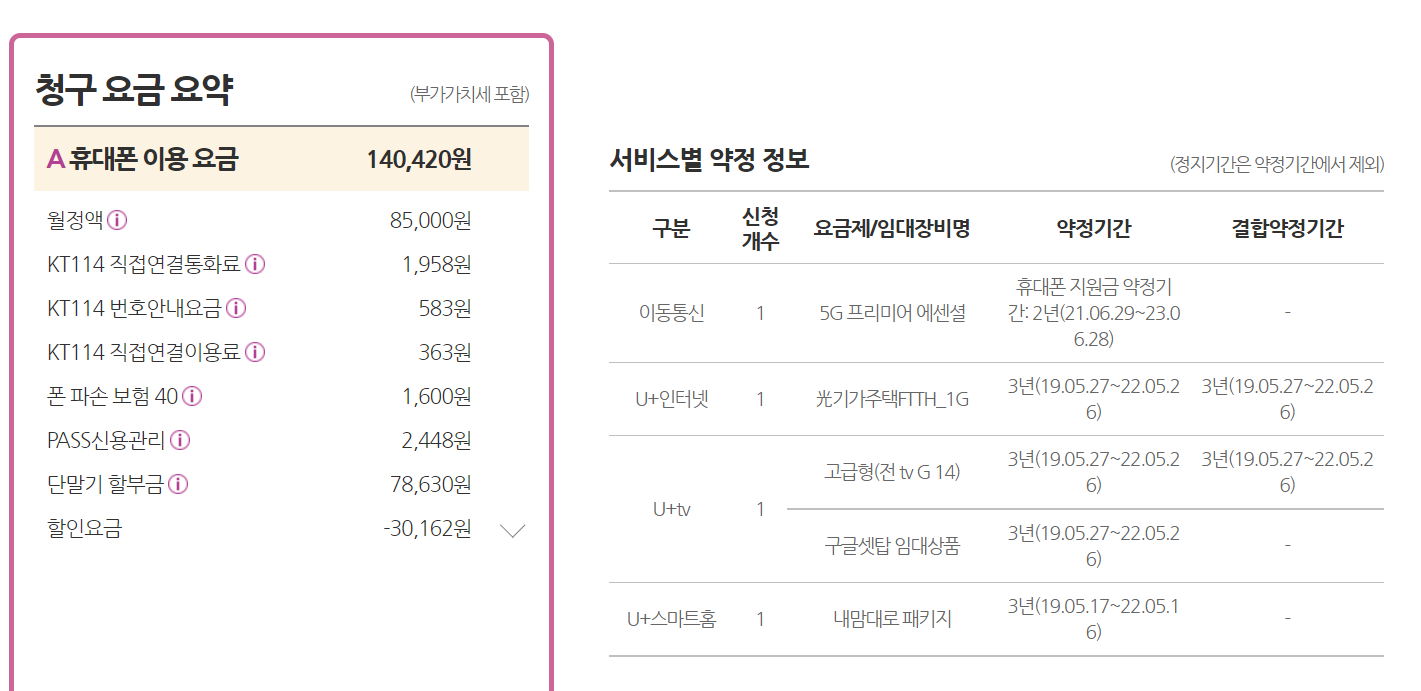 의무 기간이 있을 것입니다. 제 추측이 맞다면 앞으로 쭉 5G 프리미어 에센셜 요금제를 쓰시는 게 아닌